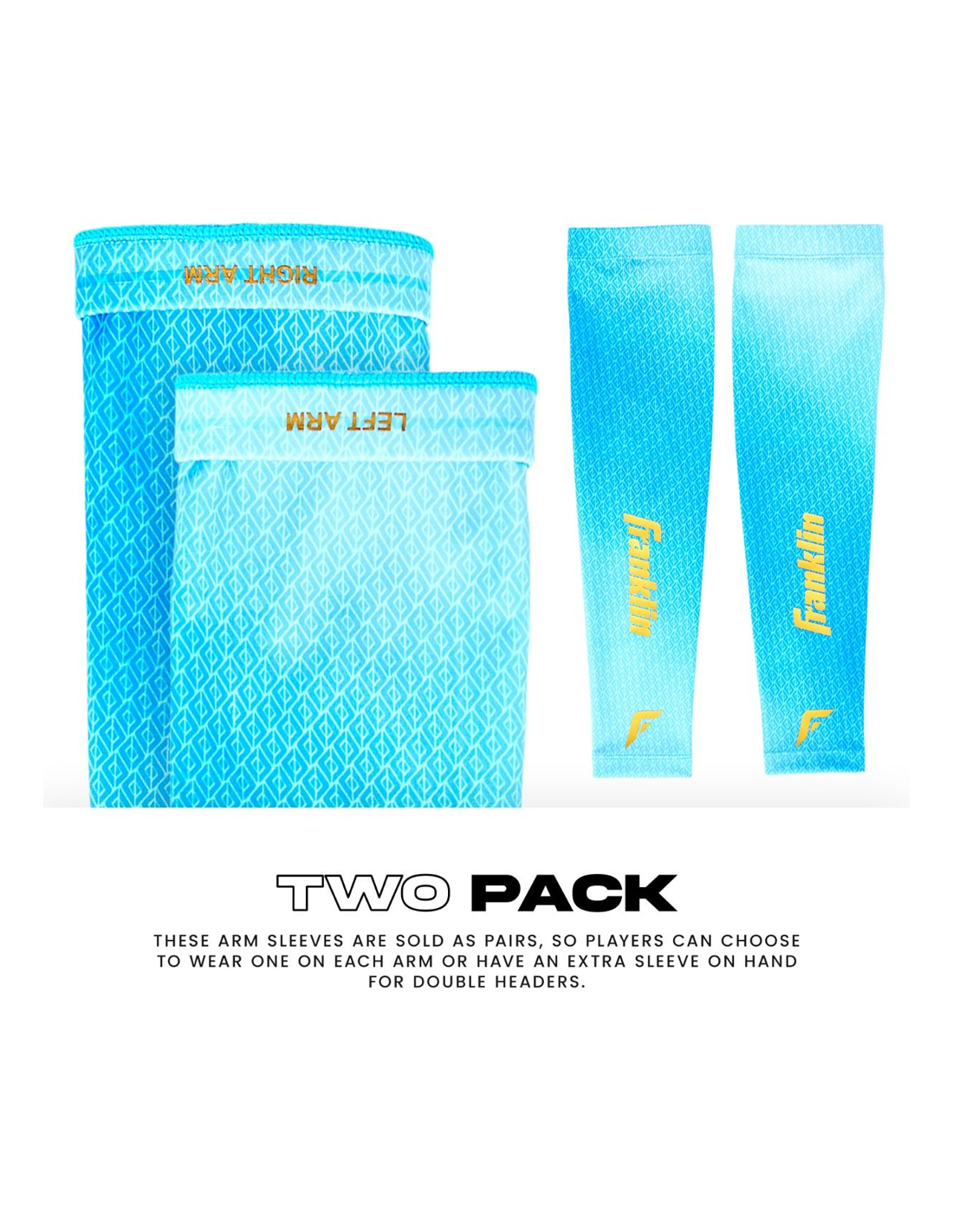 ARMSCHÜTZEN-PAARE: Diese Armstulpen werden paarweise verkauft und werden mit (2) Stulpen geliefert, so dass die Spieler eine an jedem Arm tragen können oder eine zusätzliche Stulpe für Double Headers zur Hand haben.