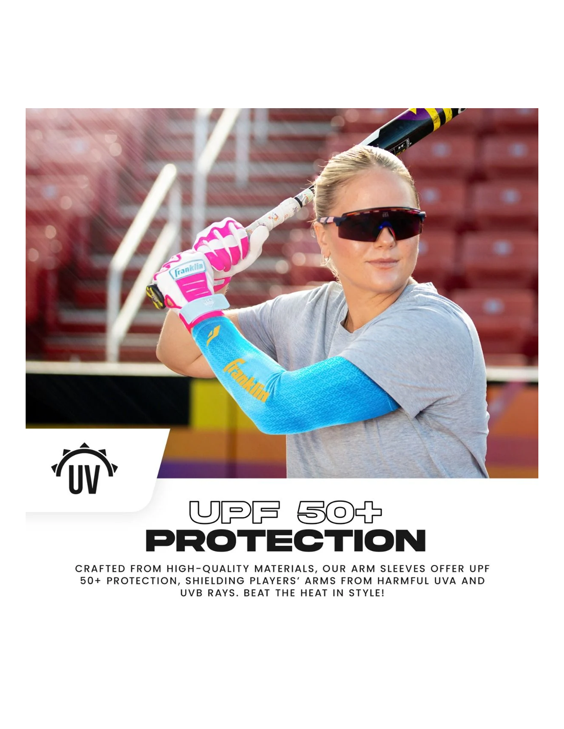 GERINGES GEWICHT + FEUCHTIGKEITSABTRIEB: Diese Armstulpen aus leichtem, feuchtigkeitsableitendem Material halten die Spieler auf dem Spielfeld selbst bei den intensivsten Spielen kühl und komfortabel und bieten gleichzeitig einen UVA- und UVB-Sonnenschutz von 50+.