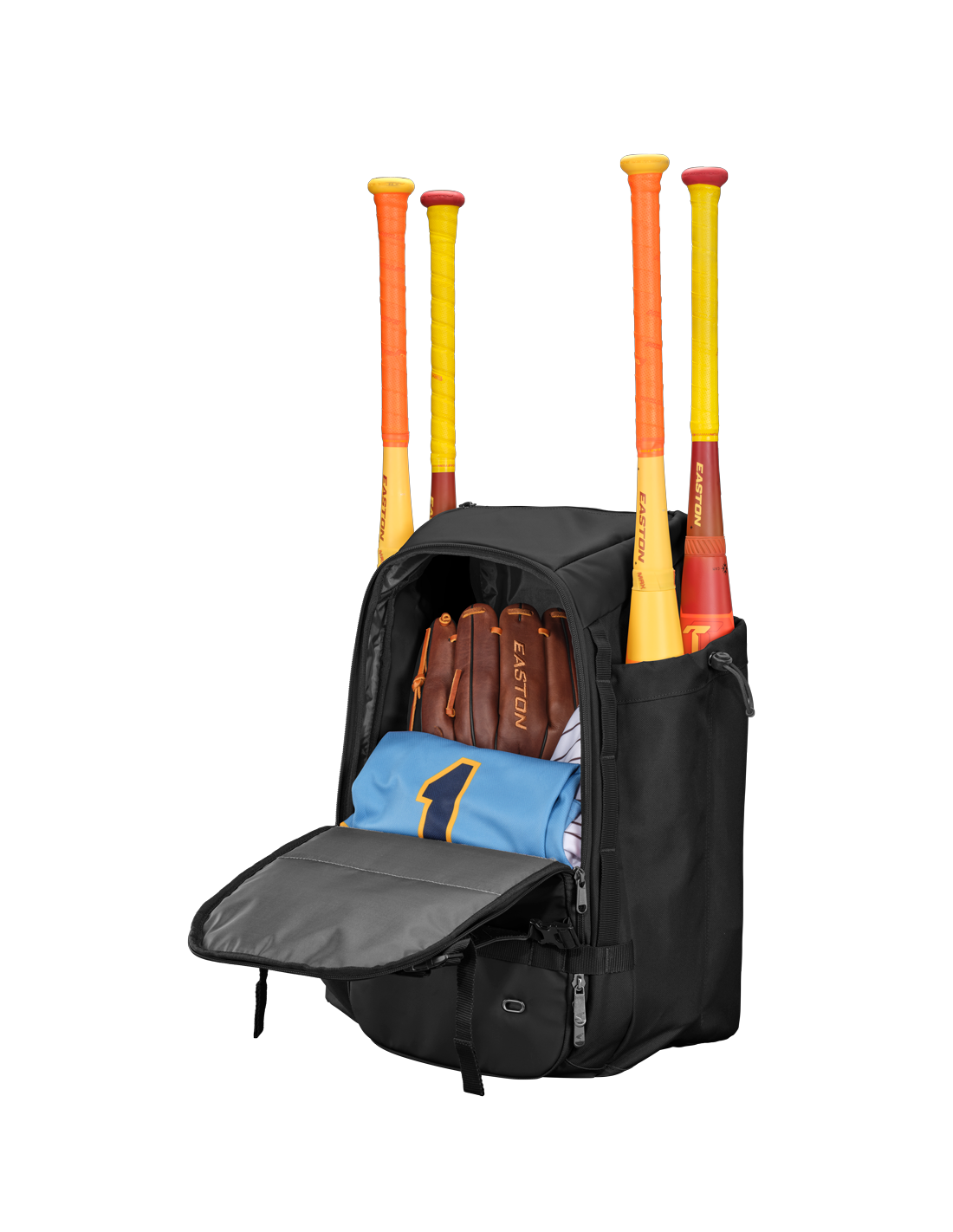 Compartments: Four Cord-Locking Bat Sleeves, Dedicated Footwear Compartment, Front-Facing Main Opening, Adjustable Helmet Holder, Personal Pocket On Top, Expandable Mesh Pocket