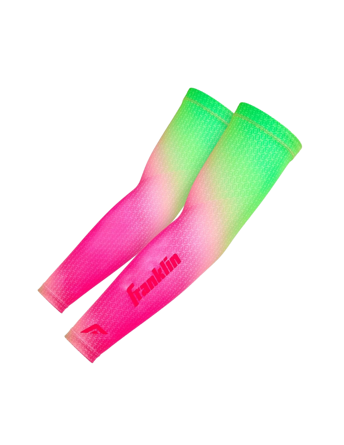 Keep your arm cool, compressed, and ready for action on the diamond with Franklin Sports' Youth Compression Arm Sleeves. No matter what position you play, Franklin Sports' Premium Compression Arm Sleeves are a must-have on-field accessory for any baseball or softball player! By lightly compressing the muscles in your arm, these sleeves help improve blood flow and keep muscles well-oxygenated for maximum performance. The compression also helps reduce muscle vibration, aiding in injury prevention and promoting overall arm health. Crafted from a lightweight, breathable fabric, our Compression Arm Sleeves provide muscle compression while keeping you cool and comfortable throughout the game. Designed for a secure fit, each sleeve features a thick elastic band and silicone grip ring at the top, ensuring it stays in place without constant adjustments. Franklin Sports Compression Arm Sleeves are made with premium materials that provide UPF 50+ UV protection, shielding your arm from harmful UVA and UVB rays. The moisture-wicking fabric also helps keep your arm dry and comfortable by drawing sweat away from the skin. Sold in pairs, these sleeves are suitable for both boys and girls, allowing you to wear them on either arm for added versatility. Available in youth sizing and a variety of colors, including our signature Flex logo pattern, Franklin Sports’ Compression Arm Sleeves allow every baseball and softball player to find the perfect match for their uniform—or stand out in style.