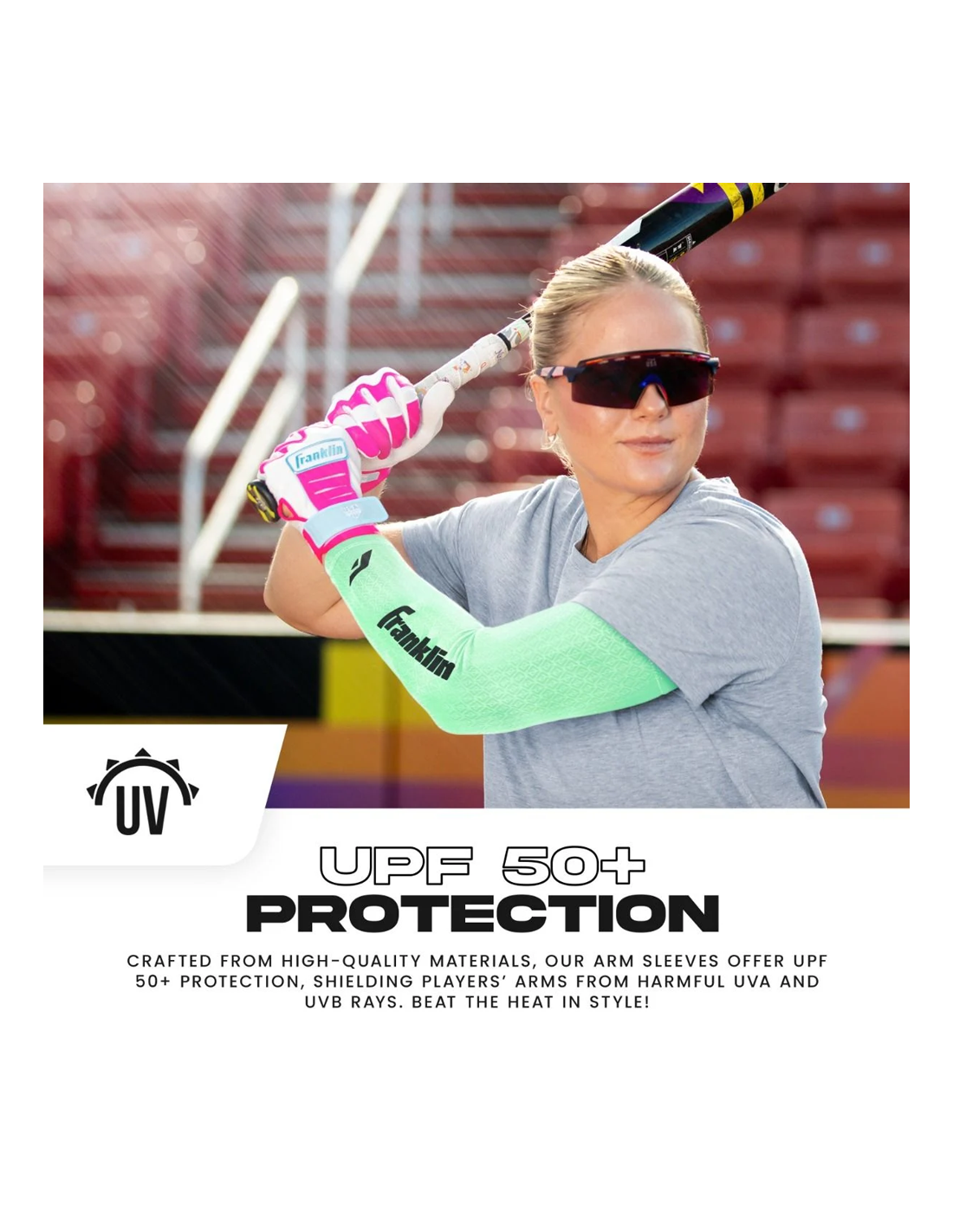 REDUCE INJURY: Franklin Sports arm sleeves help dampen muscle vibrations during the throwing motion, aiding in injury prevention and supporting overall arm health.