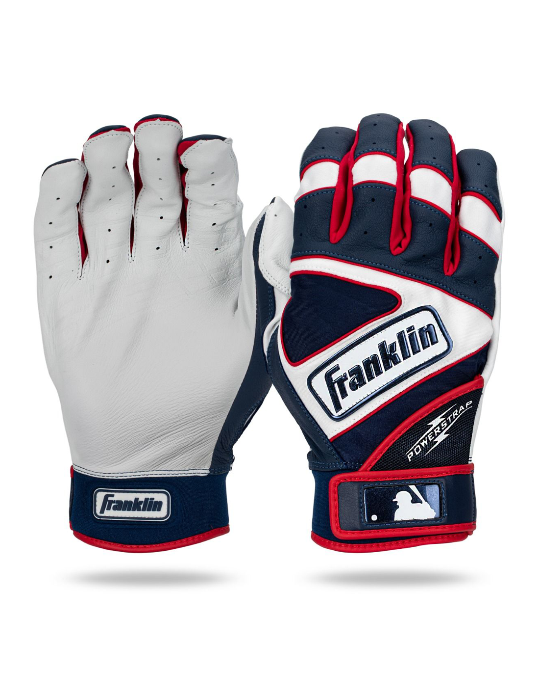 Guantes de bateo de béisbol Franklin Powerstrap® - Azul marino/Rojo L