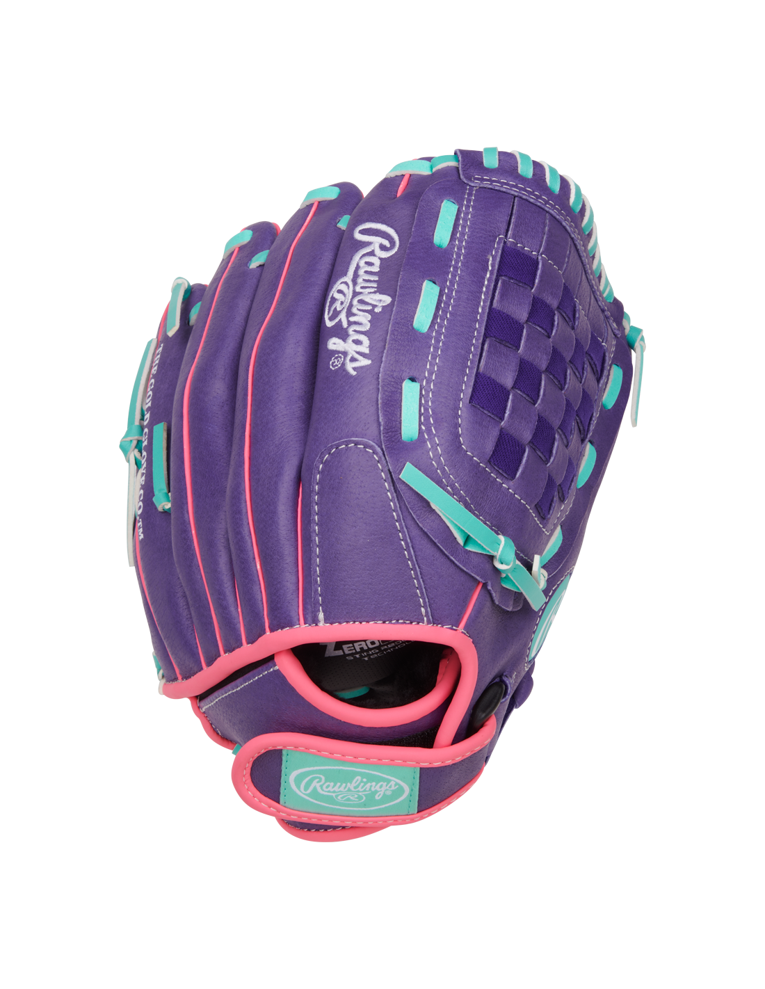 Con sus brillantes detalles en púrpura, rosa y menta, el guante de softball juvenil Rawlings Sure Catch de 11,5 pulgadas añade un estilo sobresaliente a un rendimiento de confianza.