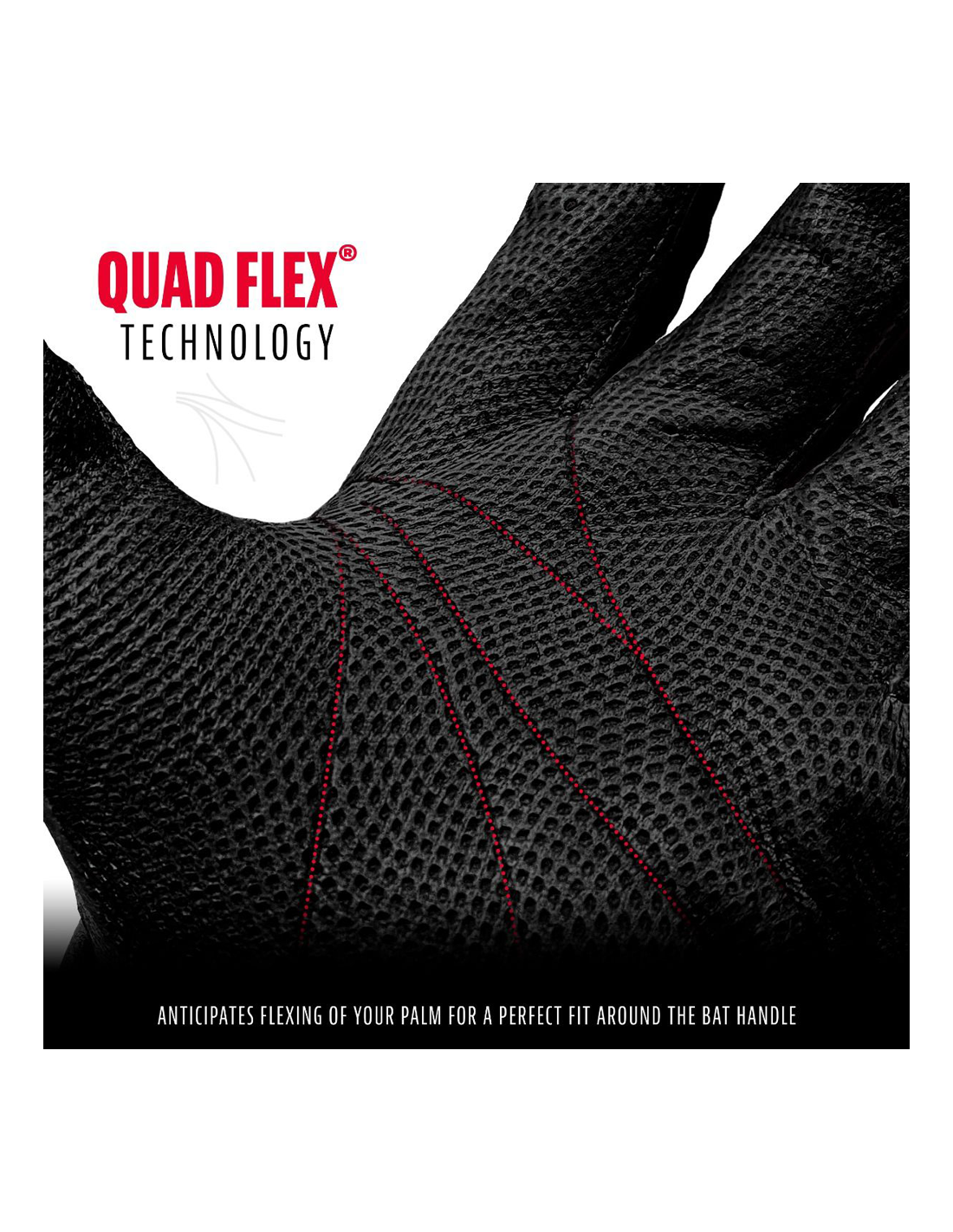 - QUAD-FLEX TECHNOLÓGIA: Előrelátja a tenyér hajlítását, hogy tökéletes illeszkedést biztosítson az ütőmarkolat körül