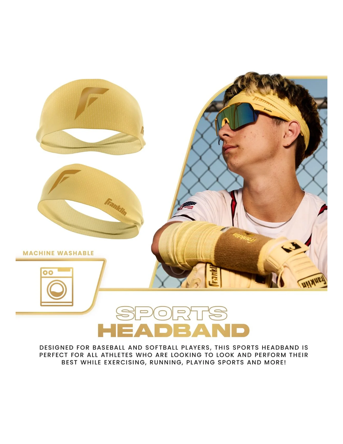 A Franklin Sports Baseball + Softball fejpántot a prémium teljesítményt szem előtt tartó sportolók számára tervezték. Ezek a sportos fejpántok tökéletes kiegészítői bármilyen egyenruhának vagy edzőruhának, tökéletesek futáshoz, atlétikához, edzésekhez és még sok máshoz. Az egyméretű kialakítás kényelmes, 4-utas sztreccset kínál, amely veled együtt mozog, így bármilyen tevékenység során kényelmes és biztonságos illeszkedést biztosít. Lélegző anyagból készült, és UPF 50+ UV-védelmet is nyújt, hogy megvédjen a káros UVA- és UVB-sugaraktól, megelőzve a túlmelegedést és a napozás veszélyét. A nedvességelvezető technológia szárazon és kényelmesen tartja Önt azáltal, hogy az izzadságot elvonja a bőrétől, így a játékra összpontosíthat. A több színben kapható és a jellegzetes Flex logó mintával ellátott Franklin Sports fejpánt segítségével a baseball- és softball-játékosok megtalálhatják a tökéletes párosítást az egyenruhájukhoz, vagy stílusosan kitűnhetnek. Emelje játékát és javítsa megjelenését a Franklin Sports Baseball + Softball fejpánttal még ma!