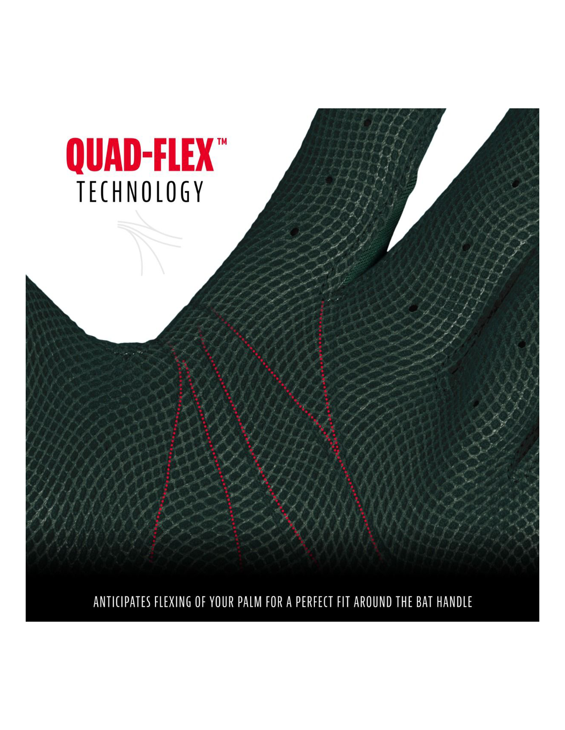 TECNOLOGIA QUAD-FLEX®: Anticipa la flessione del palmo per una perfetta aderenza all'impugnatura della mazza.