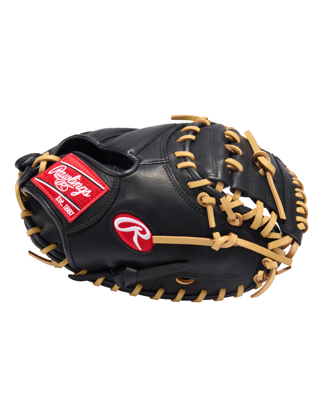 Afgewerkt in een scherpe combinatie van zwart en camel, levert de R9 32-Inch Catcher's Mitt zowel prestaties als uitstraling.