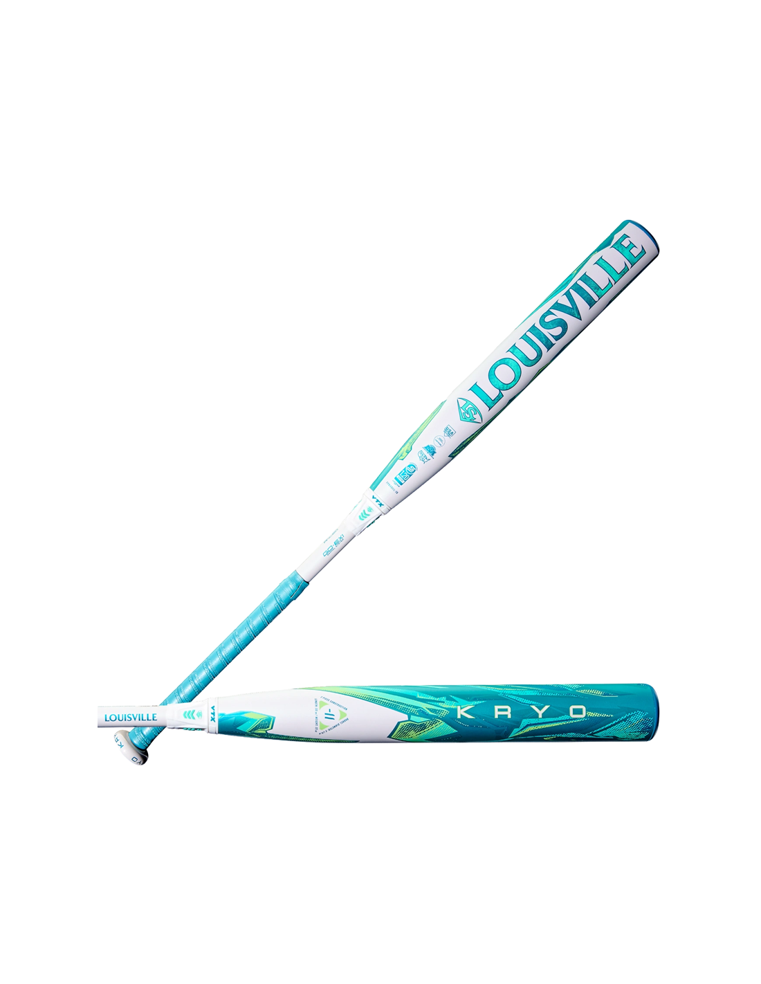 Controle over elke slagbeurt. De Louisville Slugger Kryo (-11) fastpitch softbalknuppel is ontworpen voor elite slagmensen en jonge travelball spelers. De kracht en schoonheid van water in een groenblauw en wit ontwerp, staan centraal bij Kryo: het GO-EX1 Barrel System, een composiet gapped wand ontwerp en intern disc systeem, dat samenwerkt met de XPND End Cap om een ongeëvenaard gevoel, prestatie en geluid te leveren. Kortere lengtes (28"-31") hebben een opnieuw ontworpen, langer barrelprofiel met een grotere sweetspot en een lichter swinggewicht, waardoor jongere, kleinere spelers hun prestaties kunnen verbeteren.