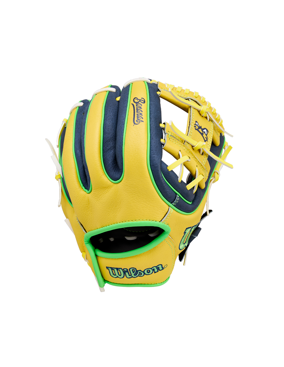 Bananas Wilson A450 este o mănușă de baseball pentru tineri de 11 inci care aduce distracție serioasă pe teren! Cu un design îndrăzneț, plin de banane, această mănușă este ușoară, pregătită pentru joc și perfectă pentru jucătorii tineri care doresc să prindă cu spatele, să arunce cu șmecherii și să fie total nebuni!